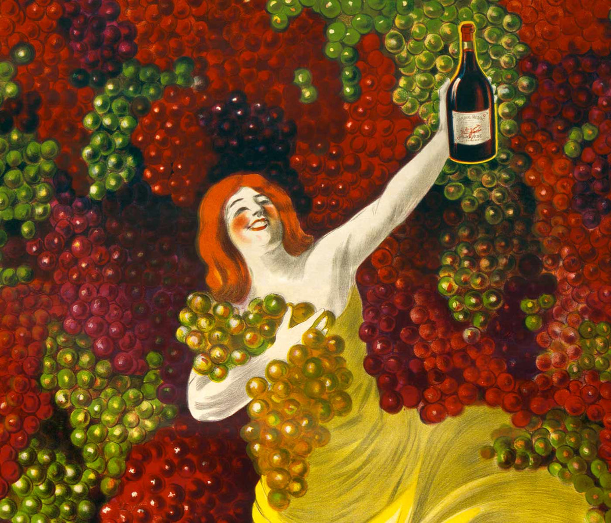 Leonetto Cappiello · 1907 · Alegre poster de licor com dançarina vestida de amarelo e cachos de uvas